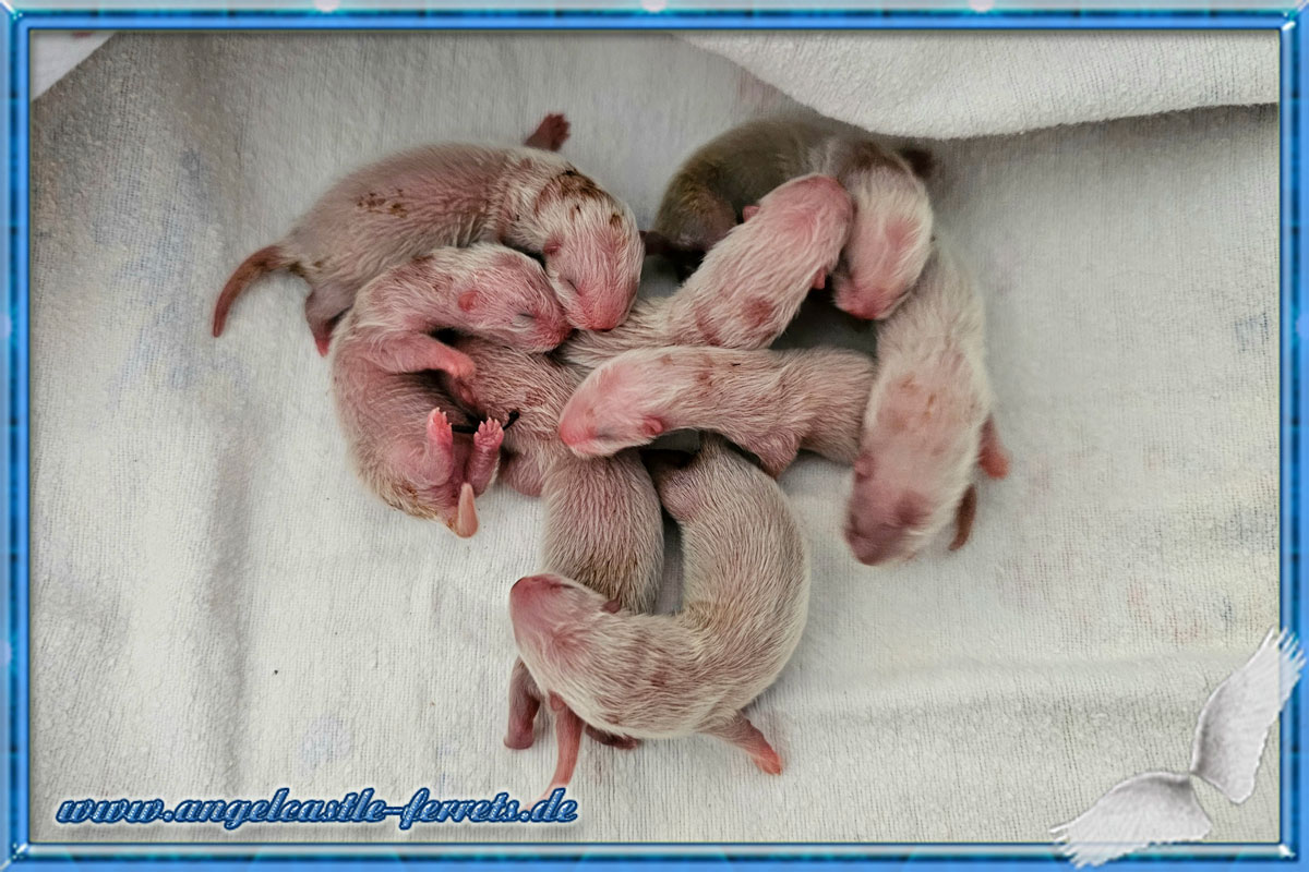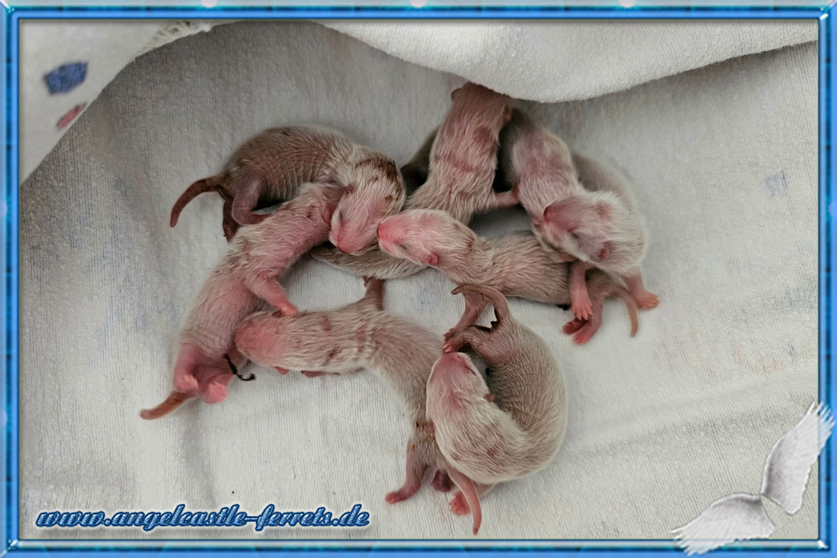 Ogin´s Welpen haben sich weiter toll entwickelt und sind kleine knubbelige zufriedenen Frettchenbays.